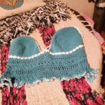 Top bicolor tejido a mano en hermosos tonos lila y rosa.